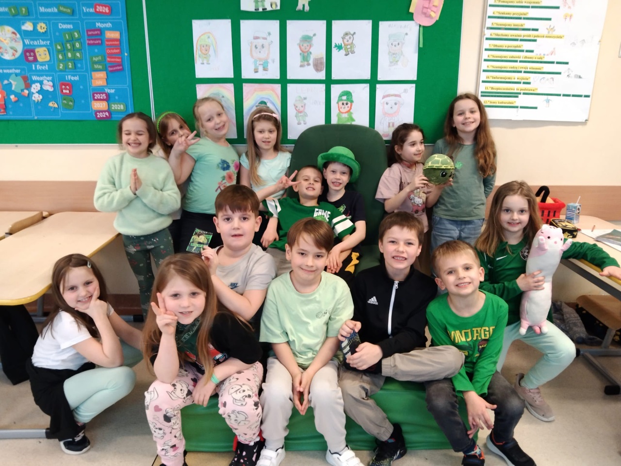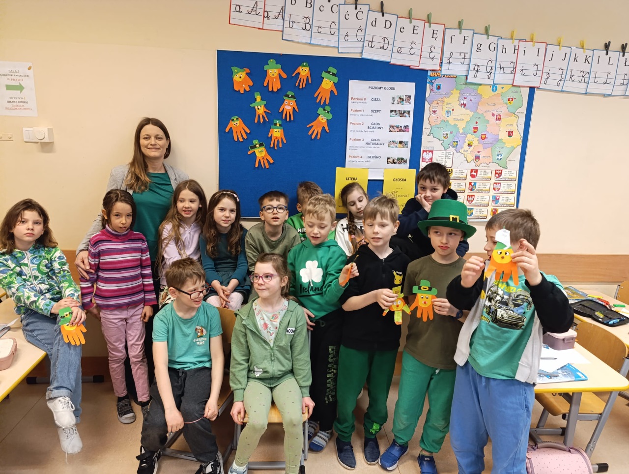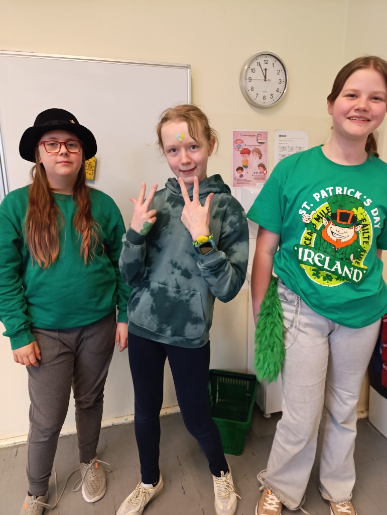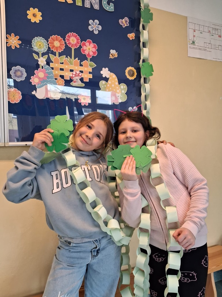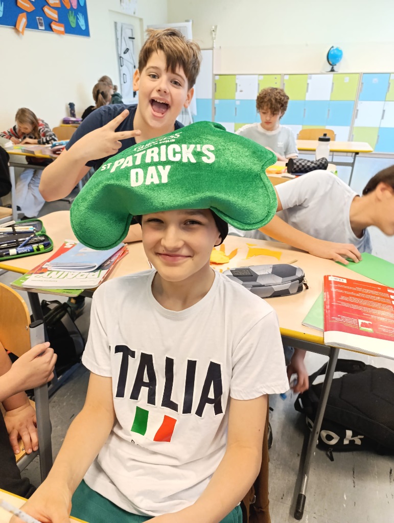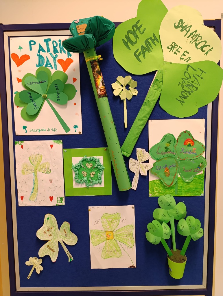 Podczas zajęć uczniowie z zaangażowaniem uczestniczyli w tematycznych quizach, rozwijali swoje umiejętności językowe oraz tworzyli kreatywne prace plastyczne inspirowane irlandzkimi symbolami i tradycjami. To była doskonała okazja, by w ciekawy i aktywny sposób poznać kulturę Irlandii oraz historię tego radosnego święta.
