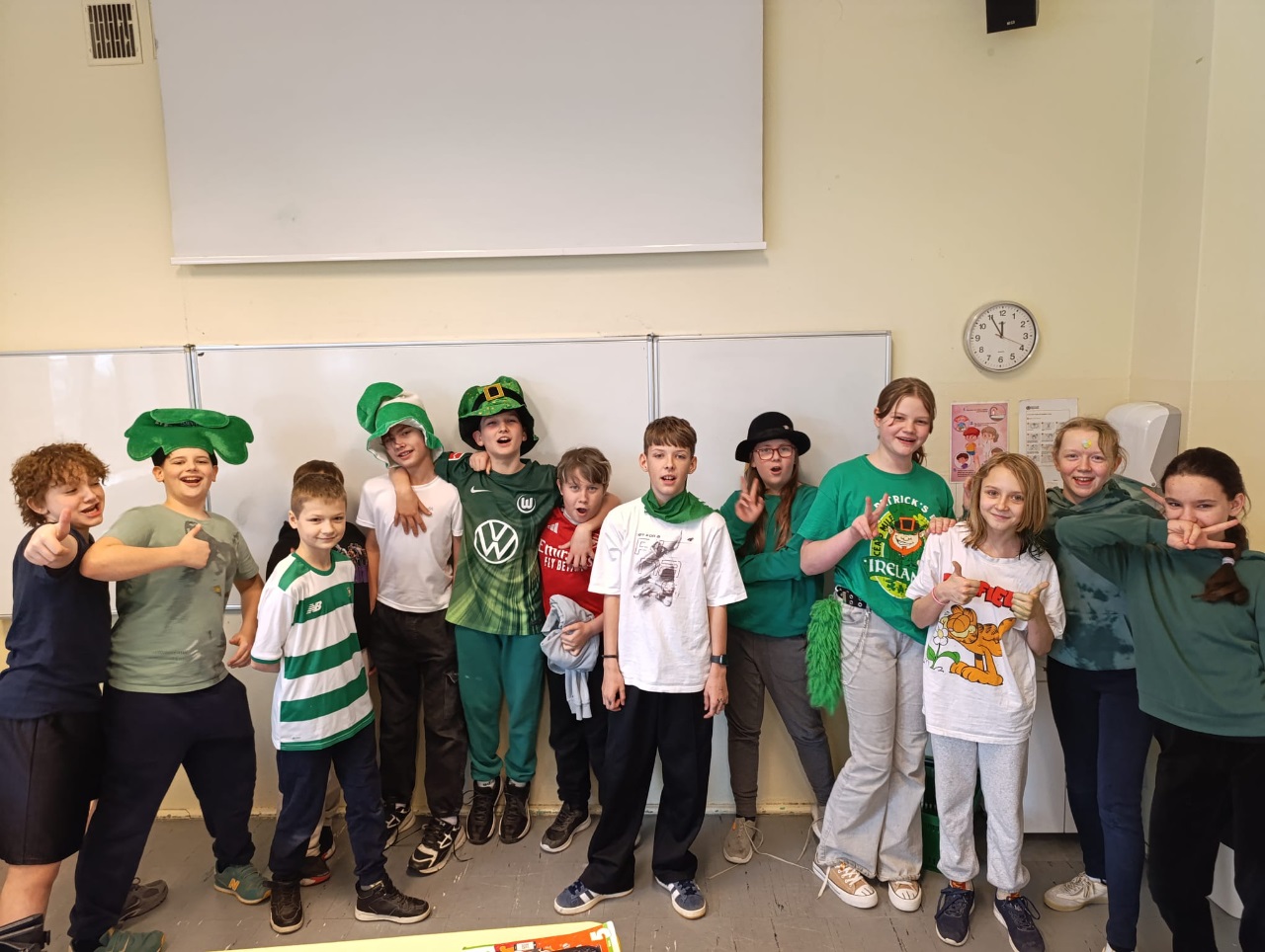 Dzień Świętego Patryka w naszej szkole zamienił zwykły dzień nauki w prawdziwe zielone święto! 🍀 Już od progu można było poczuć wyjątkową atmosferę – korytarze, sale lekcyjne i stroje uczniów przybrały wszystkie odcienie zieleni, a koniczynki pojawiały się dosłownie na każdym kroku.