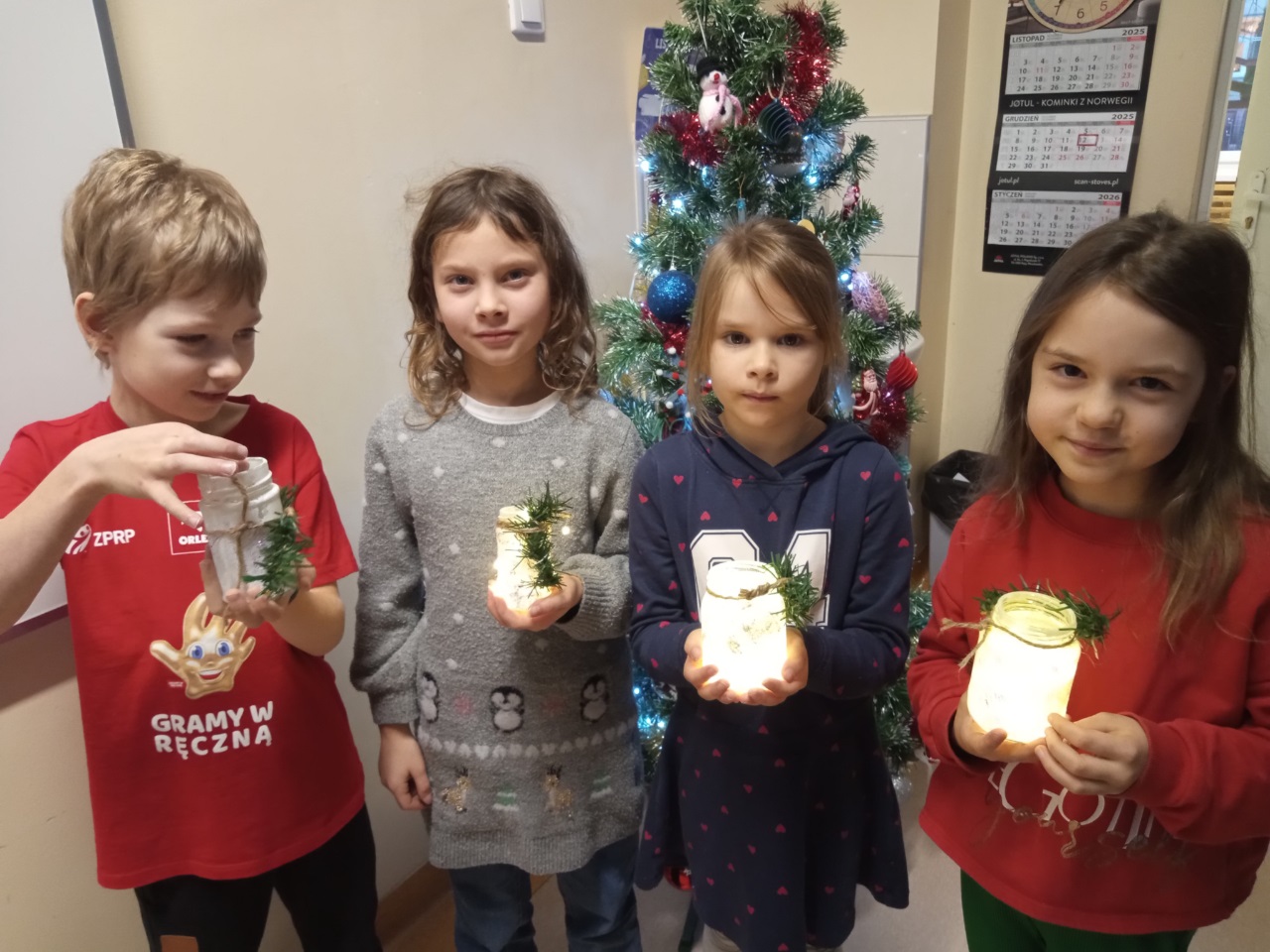 Dzieci z dużym zaangażowaniem brały udział w warsztatach, podczas których przygotowywały ozdoby świąteczne – część z nich została przeznaczona na kiermasz.