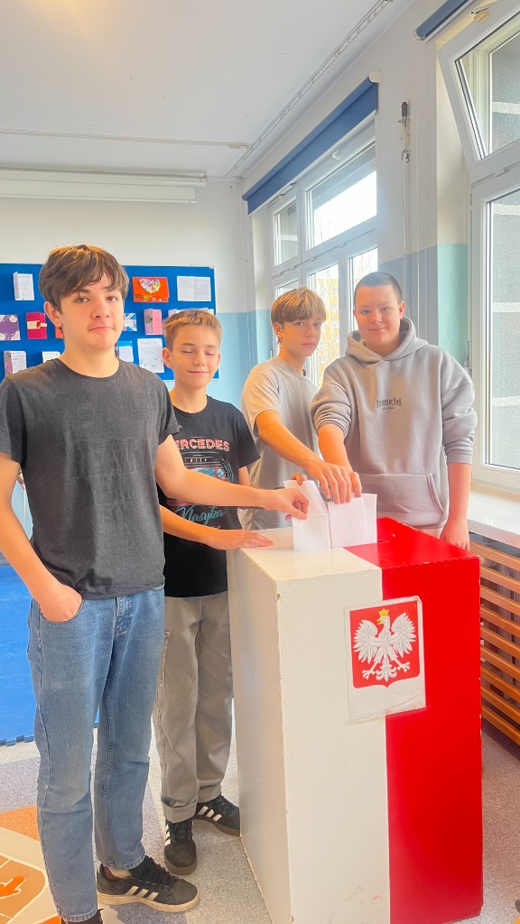 Nad prawidłowym przebiegiem głosowania czuwała Komisja Wyborcza w składzie: Kuba i Mikołaj z klasy 7a oraz Grzesiek i Bartek z klasy 8a.